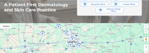They’ve done a nice job on this page showing an interactive map of all their Columbus locations, dermatologists in Columbus and a list of all their services.