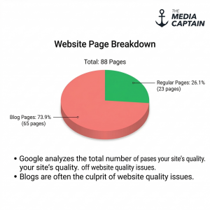 This matters more than most people realize. If the majority of your site is blog content, Google is using that content to judge your overall quality. Not just your service pages.